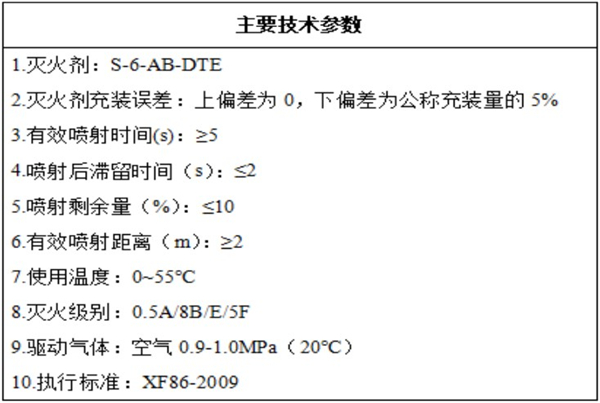 @采用本公司所生产的DTE环保无毒灭火剂作为充装液体,无击无害,对人体无任何影响及其他副作用